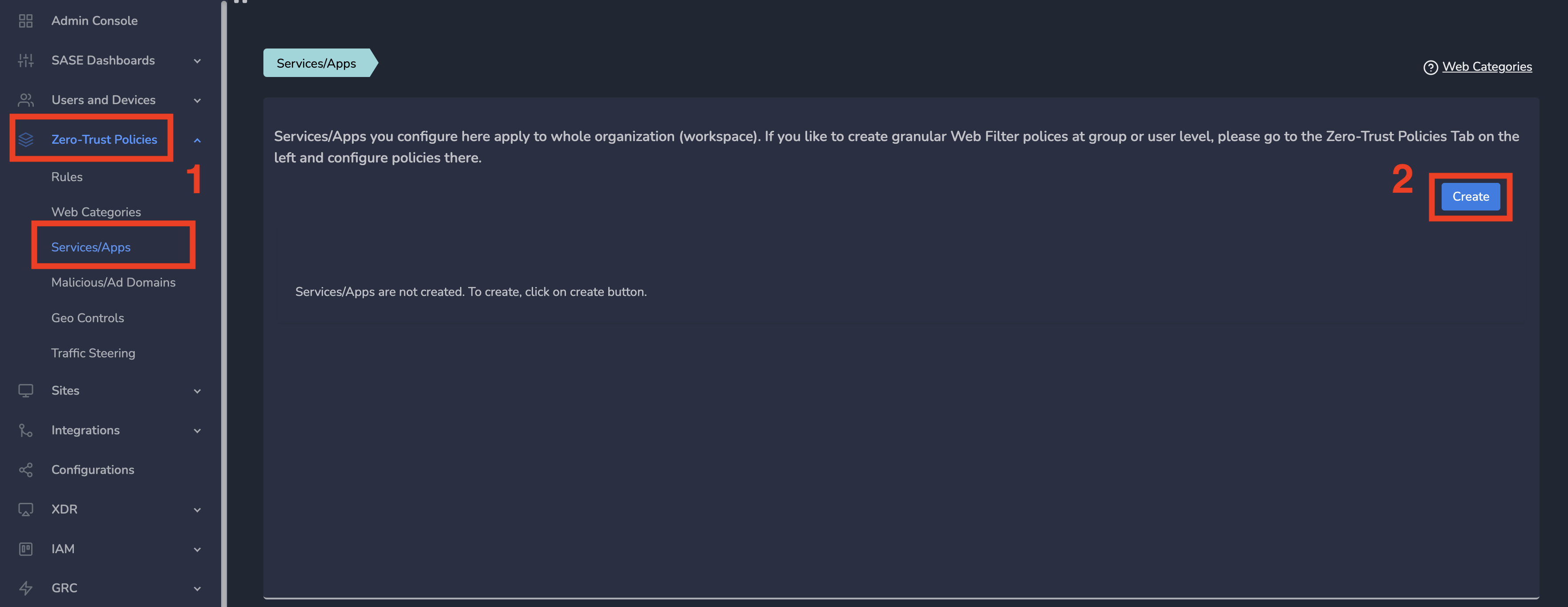 | Policies Configuration | Admins can define web services/applications policies at partner level which will be applied to all users of all workspaces under that partner | Admins can define web services/applications policies at workspace level which will be applied to all users in the workspace | Admins can define web services/applications policies at site level which will be applied to all devices behind that gateway/site in that workspace. |