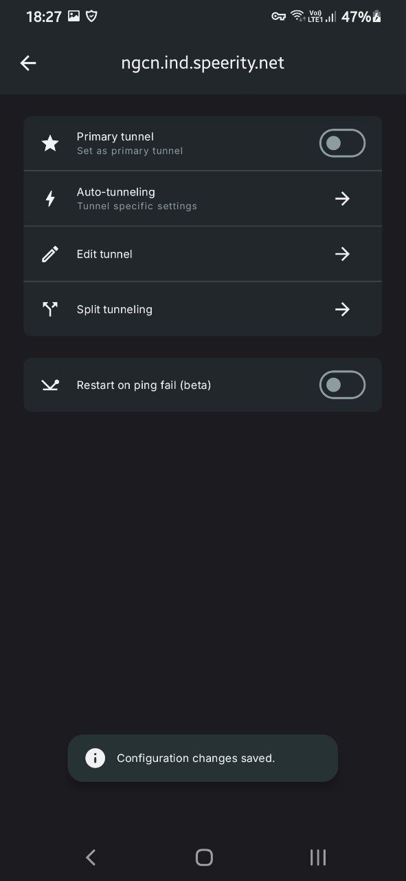 Tap on the tunnel from tunnels (Menu bar below) on Exium SASE app. You will see settings icon, click on that.