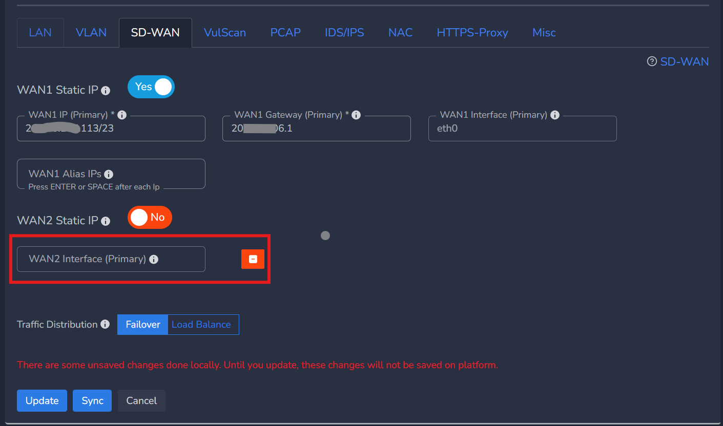 Add WAN1 IP (Primary) and WAN1 Gateway (Primary) details as shown in picture