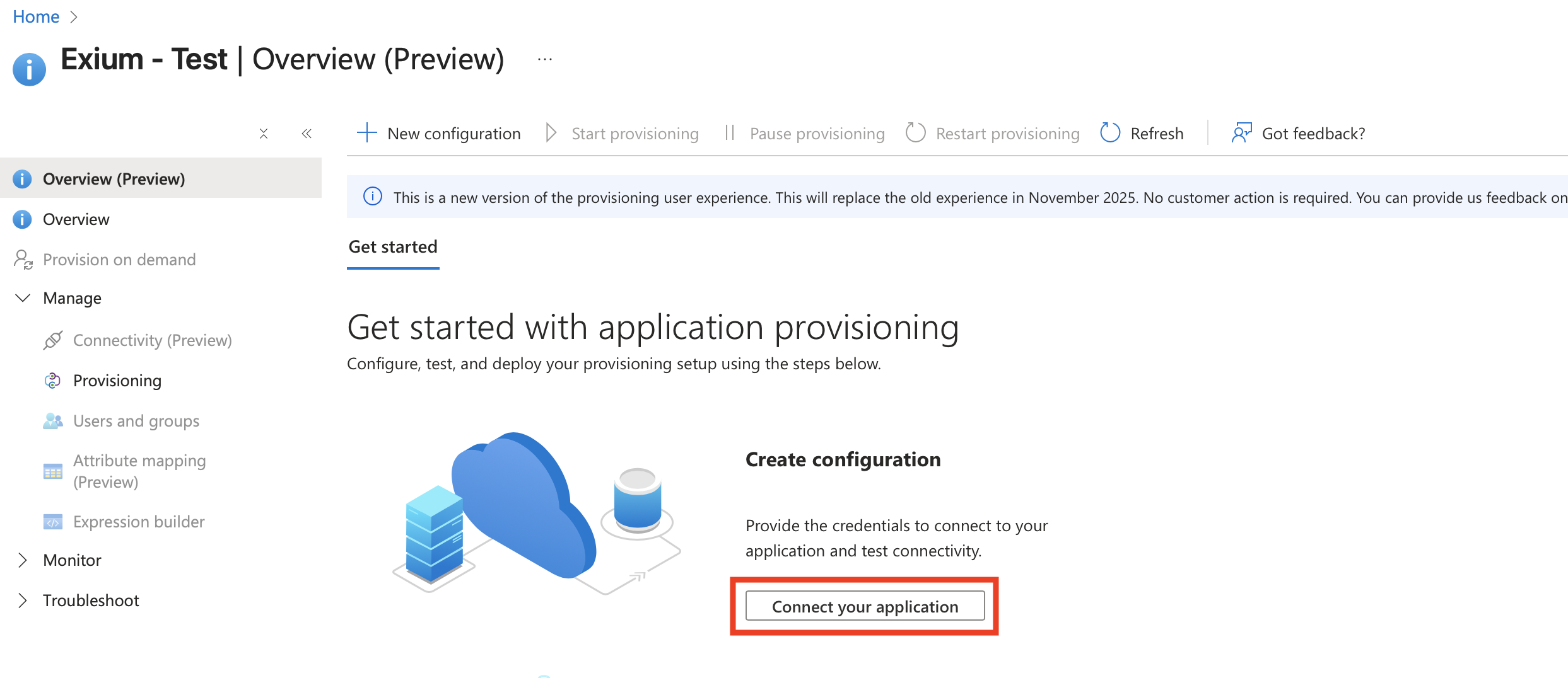 Under Exium app on Azure AD. Click on Provision User Accounts box as shown below.