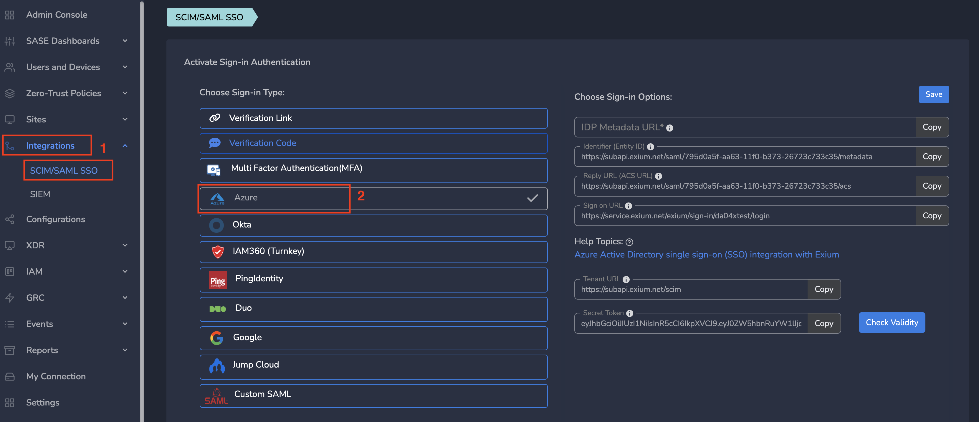 As a first step, you need to login to Exium Workspace on a separate browser tab and Navigate to SCIM/SAML SSO. Follow below steps.
