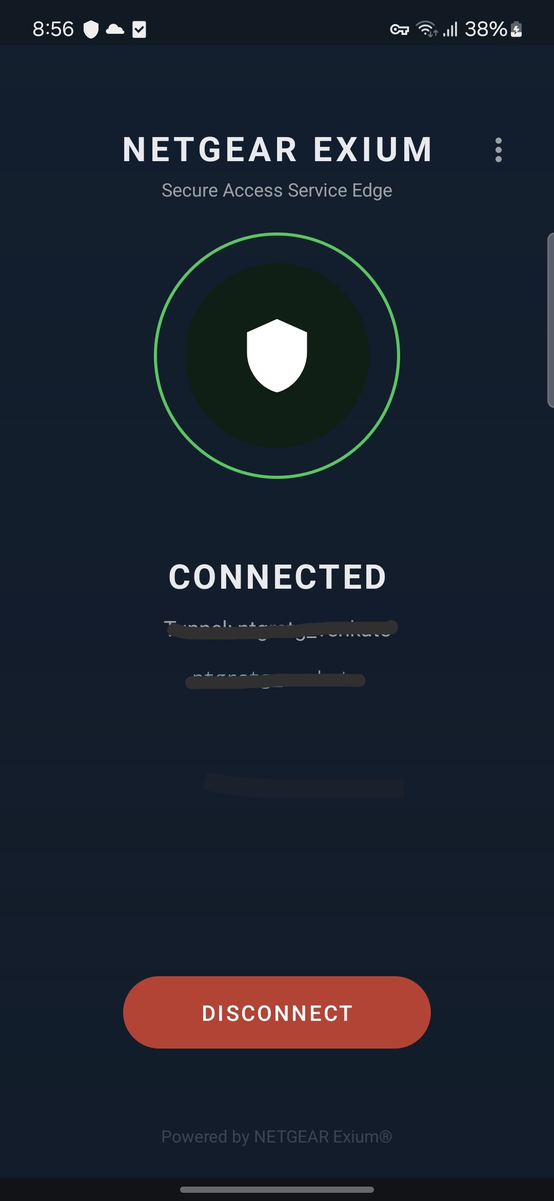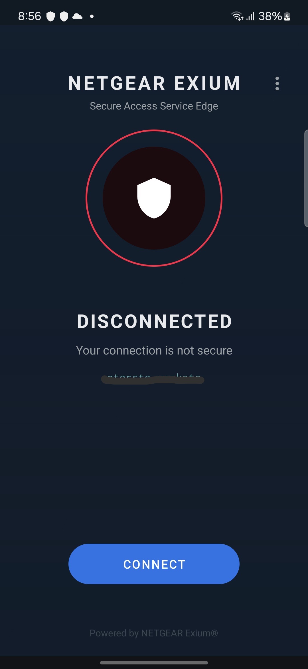 To disconnect, tap the Disconnect button. The shield icon will turn red, indicating that your device is no longer connected to the tunnel. To reconnect, tap the Connect button.